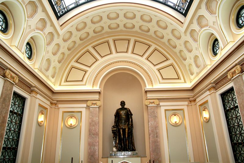 Actul de naştere a Fundaţiei universitare „Regele Ferdinand I”a fost legiferat de cele două Camere ale Parlamentului României Mari, în şedinţele din 29 octombrie (Adunarea Deputaţilor), şi, respectiv, 19 noiembrie 1925 (Senatul), urmărindu-se a fi un reper cultural la împlinirea a 60 de ani de către Ferdinand. În anul 1928 a fost cumpărat imobilul de pe terenul unde în prezent se află Biblioteca Centrală Universitară „Mihai Eminescu”, organizat un concurs de proiecte câştigat de inginerul Emil Prager. Lucrările s-au derulat între 1930-1934. (Lucian Vasiliu, Olga Rusu, Ioan Holban, Constantin-Liviu Rusu: 1995). Din cauza problemelor economice clădirea nu s-a bucurat de o festivitate de inaugurare. Pe acoperişul Fundaţiei trebuiau să fie aşezate statuile celor mai reprezentativi conducători din istoria românilor, printre ei regăsindu-se şi Carol I şi Ferdinand. Simbolistic, această idee urmărea să consacre locul celor doi regi în panteonul românesc. Grupul realizat de C. Jotzu în anii 1933-1934 nu a mai fost amplasat în locaţia iniţială, manifestându-se temerea că strucutura de rezistenţă a imobilului nu va putea suporta o greutate aşa de mare. Prin urmare, statuile au fost aranjate în curtea bibliotecii de unde au fost mutate în anul 1968 în locaţia cunoscută şi astăzi. Între 1953-1958 va purta numele „Nicolae Bălcescu”. (Victor Macarie: 2005, p. 225).